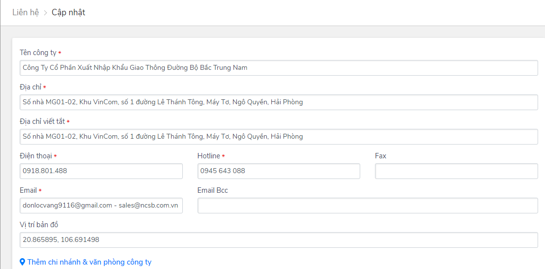 Chỉnh sửa Logo, Tên công ty, Địa chỉ, Email, Số điện thoại, Fax, Hotline,...