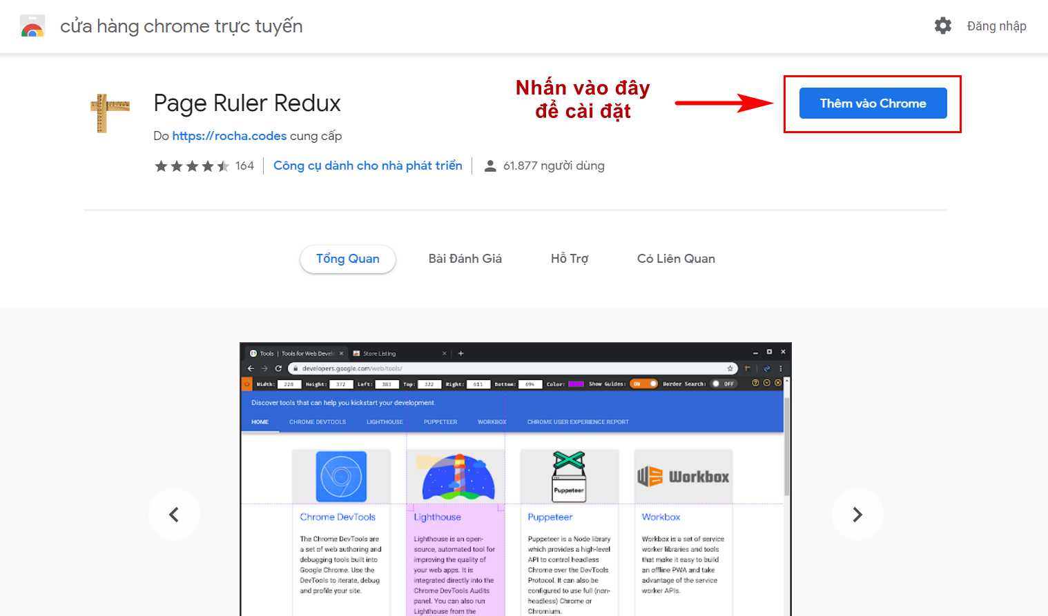 Bước 1: Cài đặt tiện ích Page Ruler Redux trên trình duyệt Chrome hoặc Cốc cốc TẠI ĐÂY