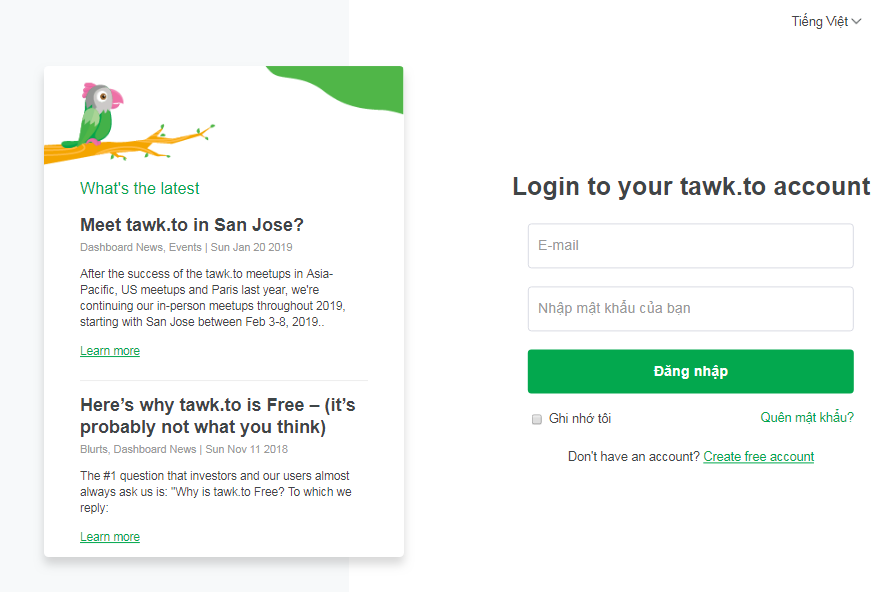 Bước 1: Đăng nhập để sử dụng ứng dụng chat tại https://dashboard.tawk.to/login.