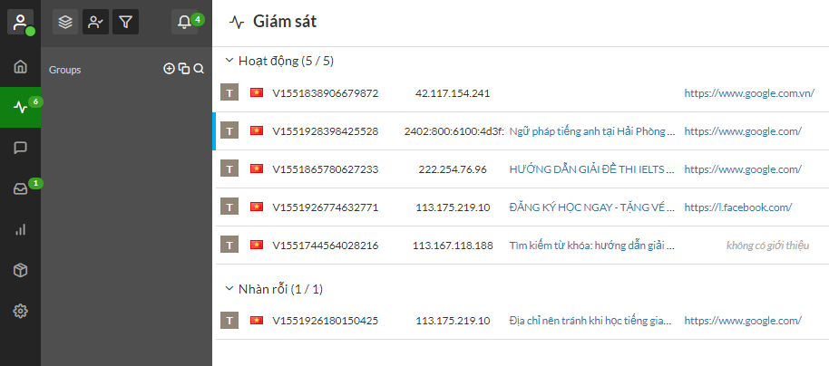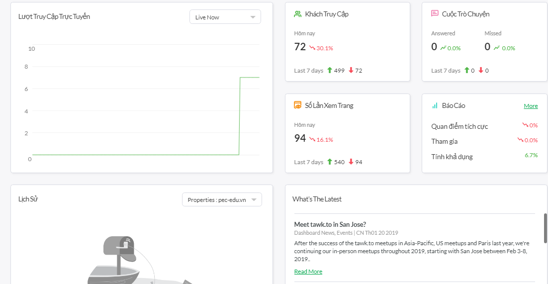 Lượng truy cập trực tuyến: được tawkto thông báo theo thời gian thực, số liệu được cập nhật gần như ngay lập tức, để bạn biết có bao nhiêu người đang truy cập website của bạn.