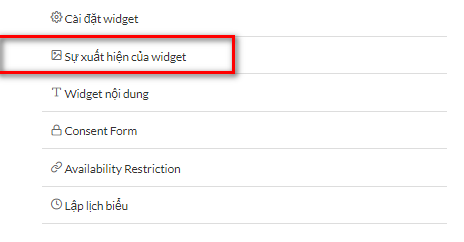 Trong mục quản trị này, bạn chọn Sự xuất hiện của widget: