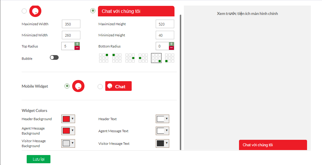 Tiếp theo, để cài đặt nội dung chat, bạn chọn Widget Nội Dung:
