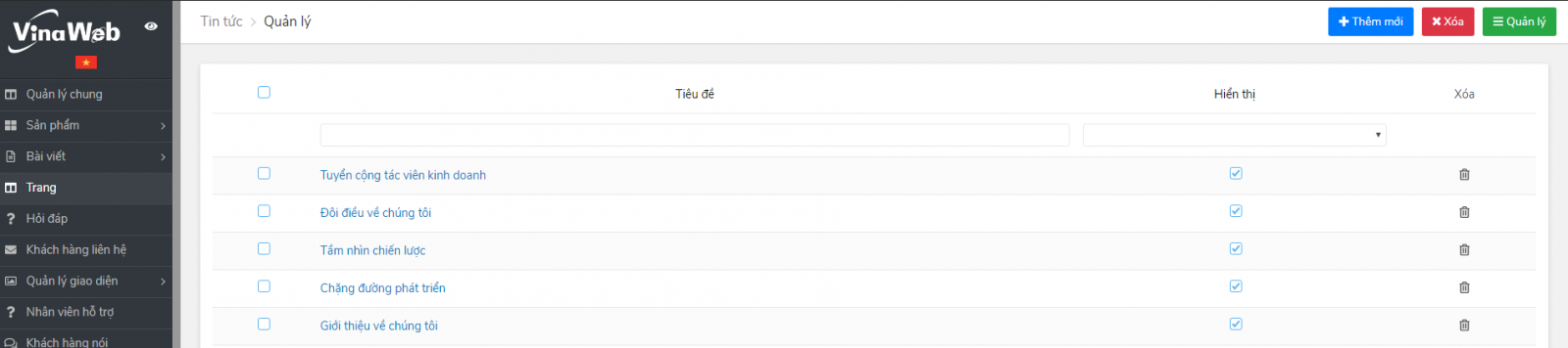 Trang là một bài nội dung đặc biệt trên website dùng để thể hiện những thông tin quan trọng và ít thay đổi như Giới thiệu về công ty, Chính sách bán hàng, Bảo hành,...